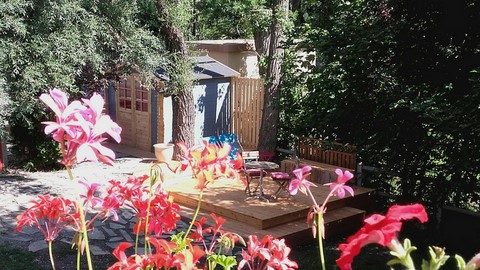 L'été, un petit coin confortable au fond du jardin est a votre disposition pour un moment de détente.