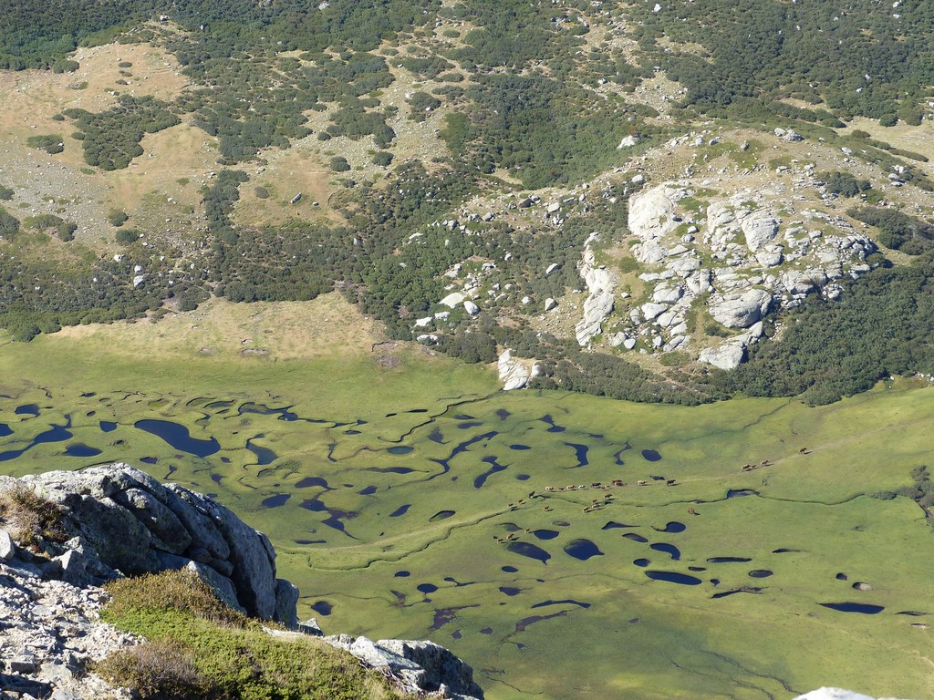 - Petit-déjeuner - Nous randonnons en direction du Lac de Bastani (2089 m) puis effectuons l'ascension du Monte Renoso (2352 m), point culminant de notre semaine que nous apercevrons au cours de toutes nos randonnées. L'étape se poursuit avec un cheminement sur les crêtes qui offre un magnifique point de vue sur la mer. - Après avoir franchi le Col de Pruno nous descendons vers les bergeries des Pozzi. Situé au milieu des fleurs et des pozzines - ces fameuses pelouses aux mille trous d'eau - l'endroit est idéal pour faire une pause pique-nique. Dans l'après-midi, nous poursuivons jusqu'au Col Verde (1289 m). C'est ici que nous installerons le bivouac de ce soir. - Dîner puis nuit sous tente